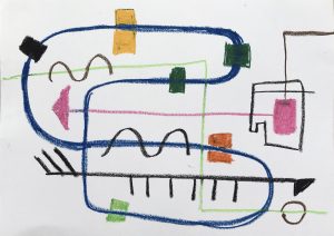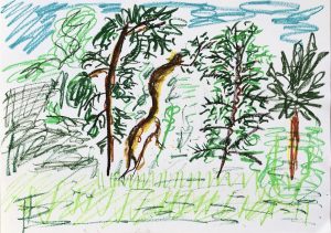Tegninger fra juli/august 2022. Dogmet var en om dagen, mens jeg var i sommerhus.